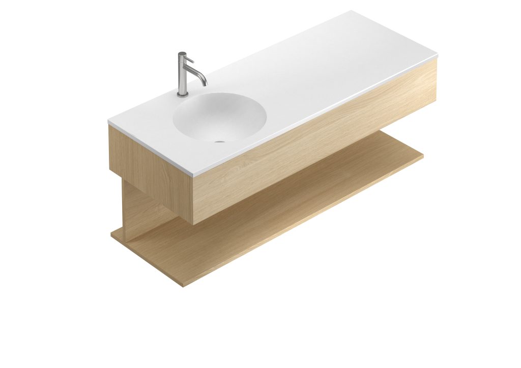 La console Elios, au design épuré et moderne, est réalisée sur-mesure pour s’adapter parfaitement à votre salle de bain.