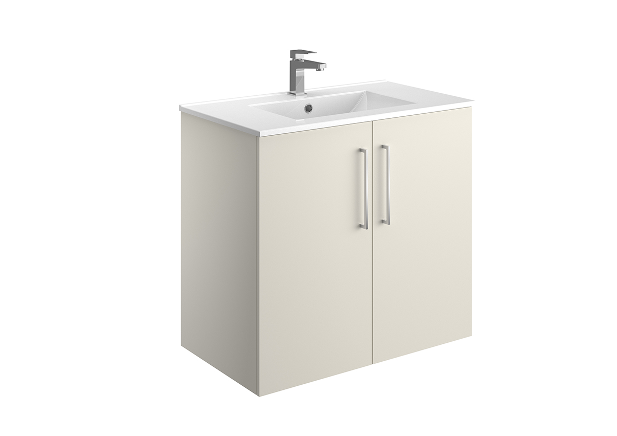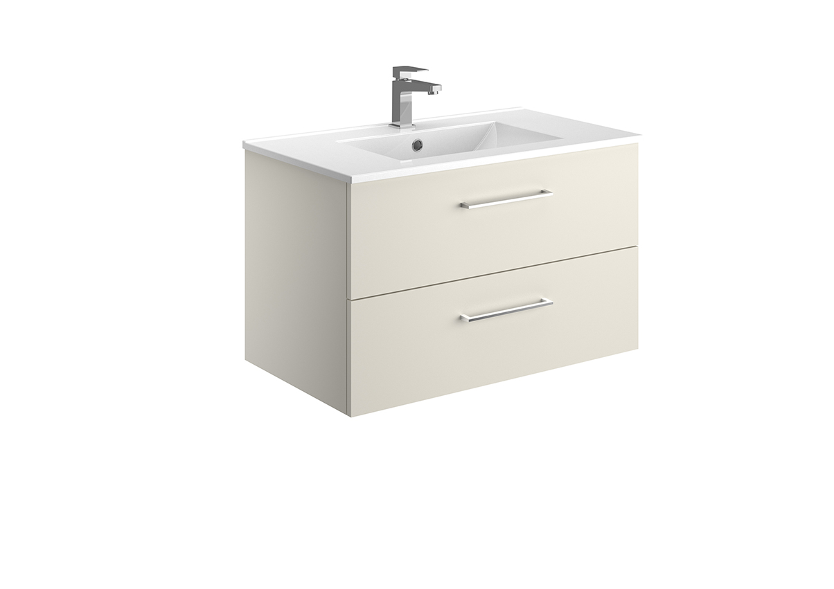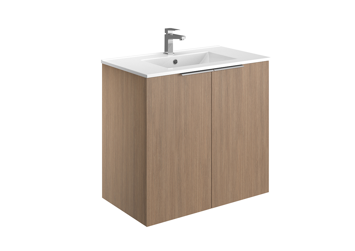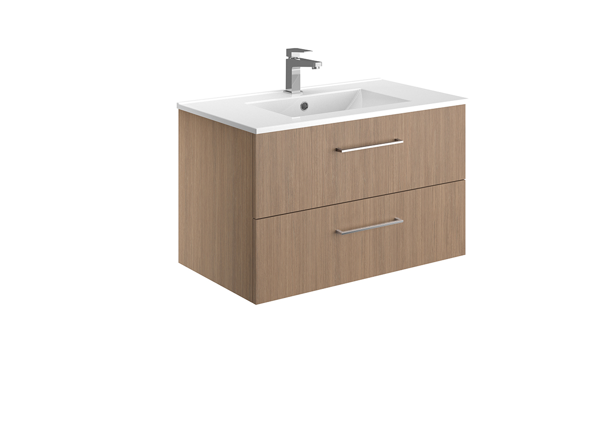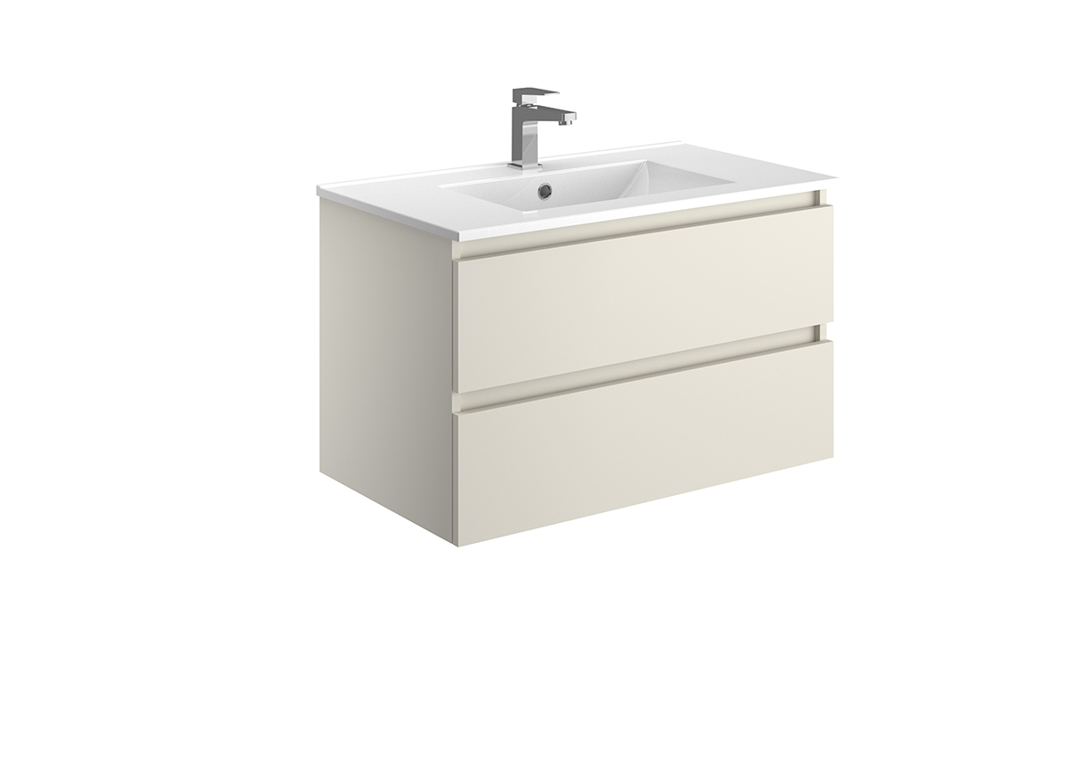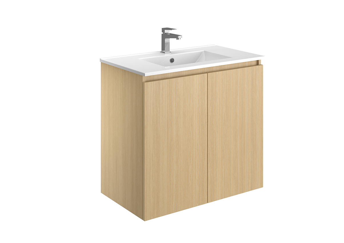 Meuble vasque – 2 ou 3 tiroirs ou portes – Plan vasque céramique blanc brillant – Prise de main ou poignée – Option pieds – Colonne assortie